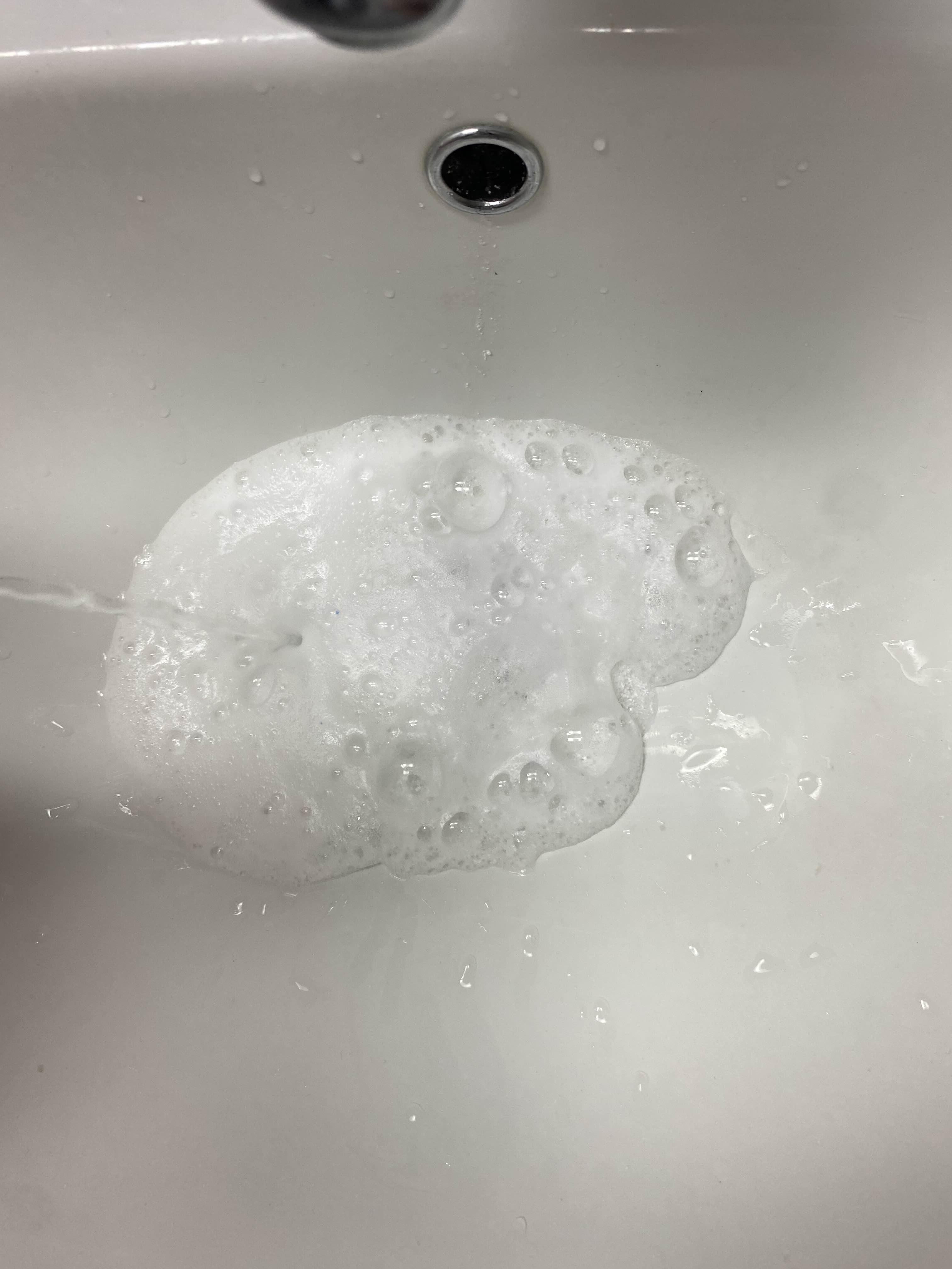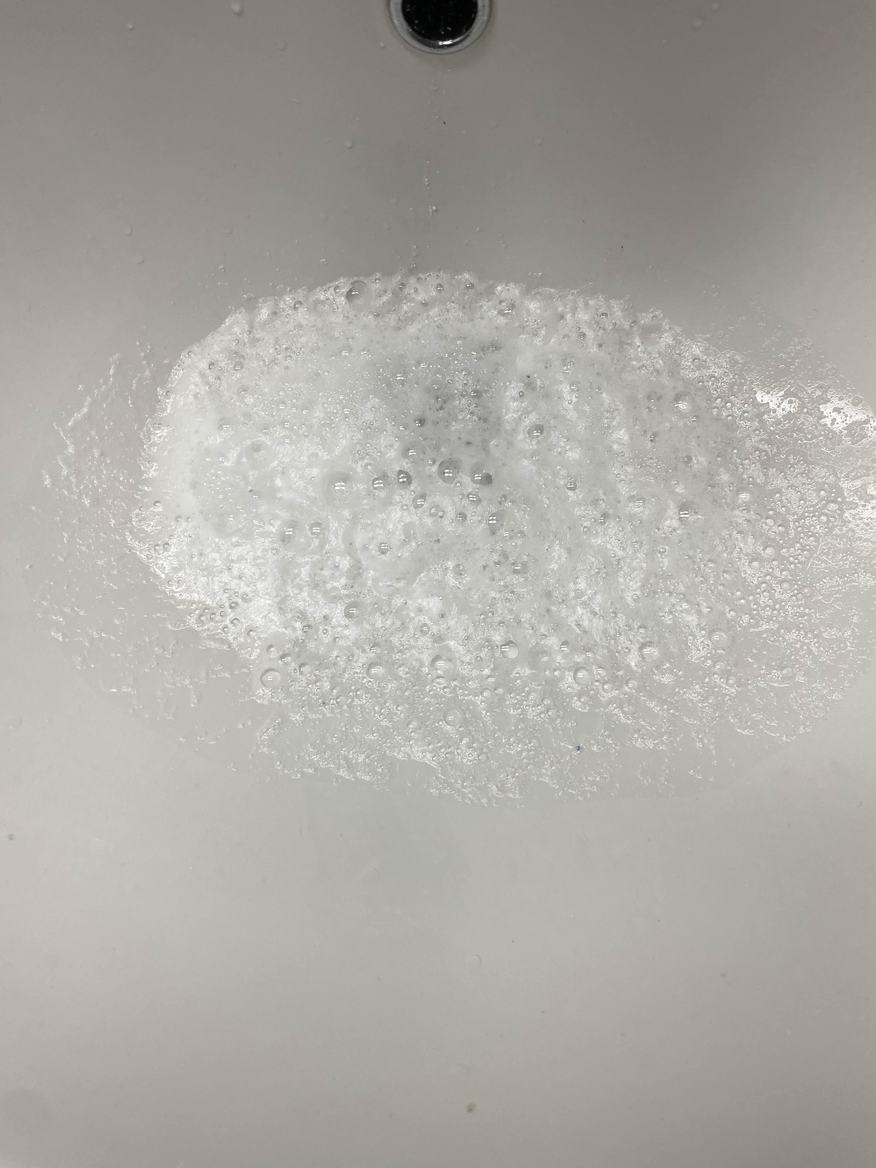 다시 뜨거운 물 한컵을 천천히 부으면 아래처럼 보글보글 끓으면서 강력세척됩니다.