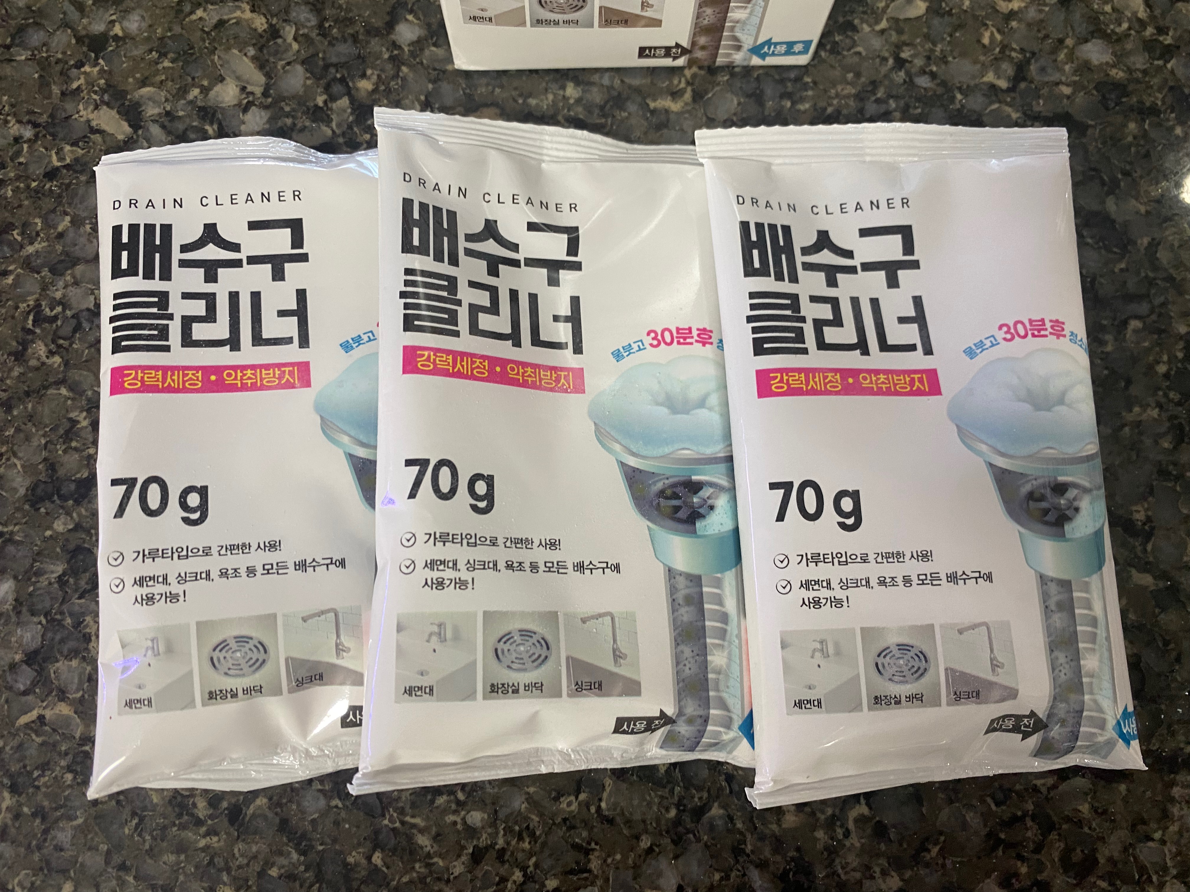보통은 기름때가 원인이어서 심한경우 배수관을 뚫는 기술자를 불러서 작업해야 하는 대공사를 해야하는데 저희 아파트는 오래된 아파트는 아니어서 그정도는 아닌것 같고 생각해 보니 그동안 배수구 클리너를 한번도 사용하지 않았던 거예요.