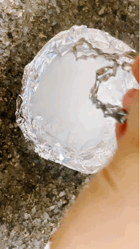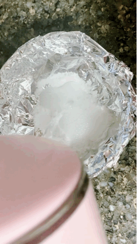 물을 끓이고 호일에 감싼 그릇에 소금과 베이킹소다를 넣은다음 끓은 물을 넣어준다.