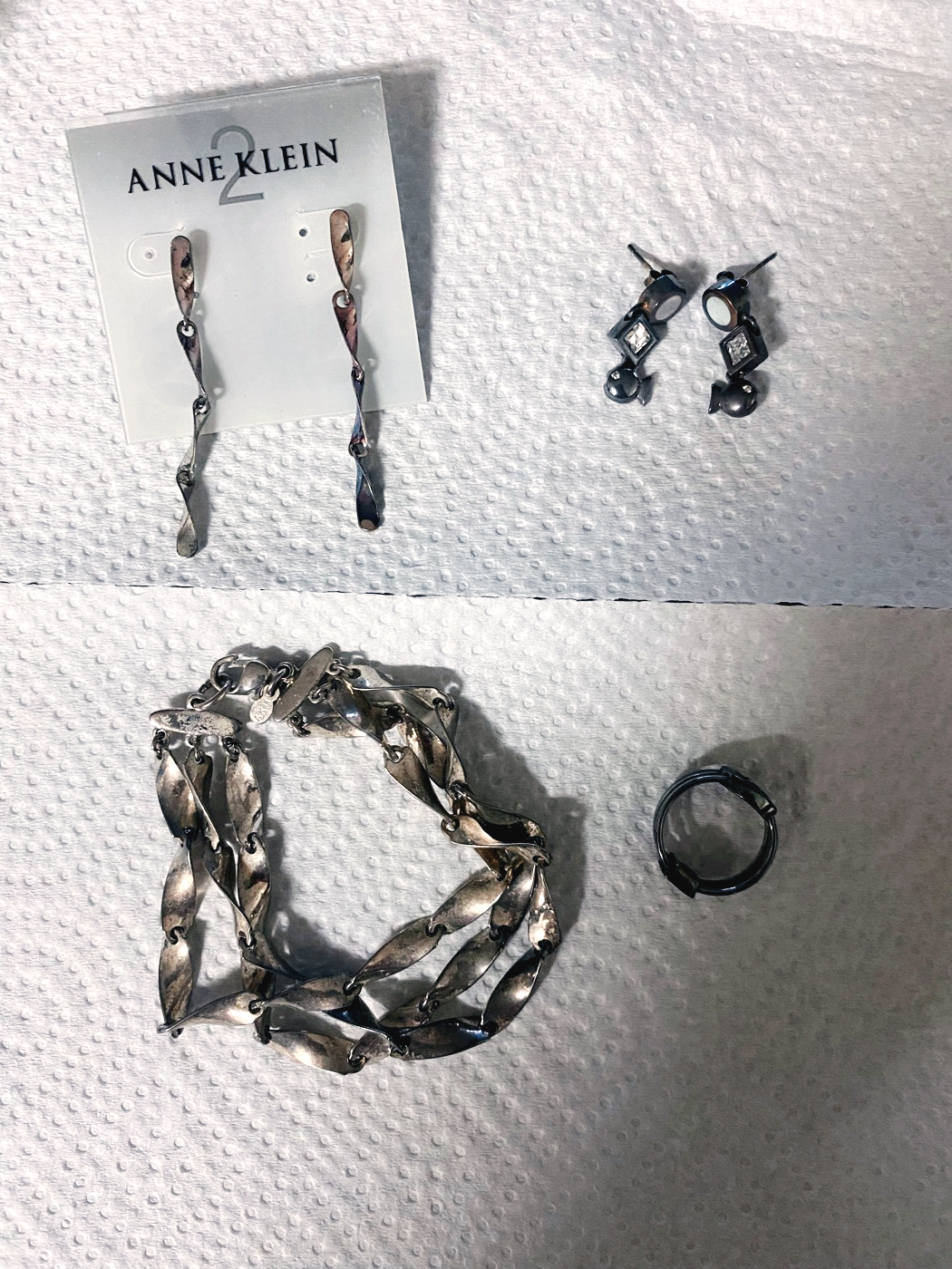 나의 경우 특히 앤클라인 제품 팔지와 클리오블루 귀걸이는 정말 손이 쪼글거리도록 20분 넘게 치약뭍힌 칫솔질을 했다.